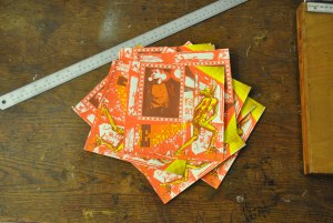 Print a papel picado (paper cut) skull design onto a dinky mini tote or a shopping bag in a choice of colour combinations. You’ll be using Gocco / thermofax screens, an easy screen printing method using lightweight plastic frames and a simple squeegee similar to a credit card.