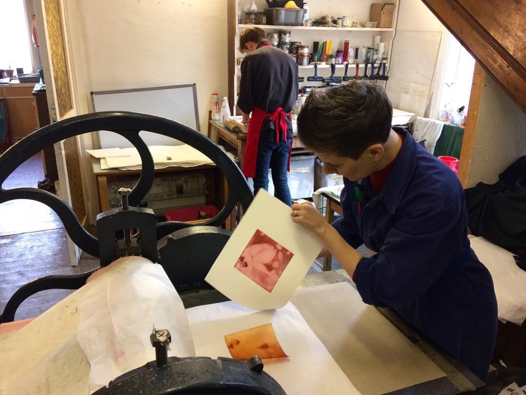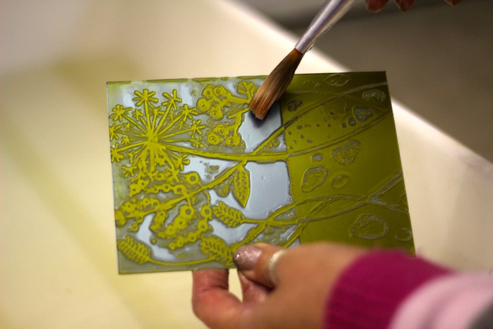 In the morning we focus on plate making, with discussion on the types of image achievable, creation of hand drawn and painted positives or plus digital manipulation of photographs or drawings brought along. You’ll make a test strip to get the exposure timing just right for your artwork.